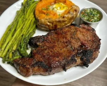 Smoked ribeye and sweet potato plate with homemade chimichurri