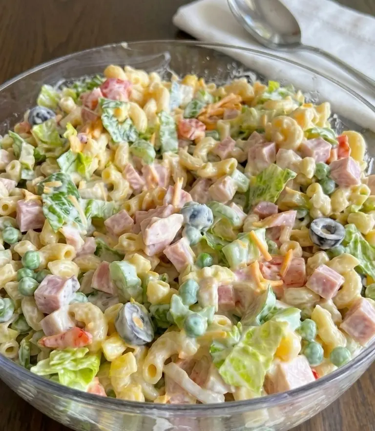 This salad is especially great because it can be prepared ahead of time, and the flavor actually improves after chilling in the refrigerator for a few hours. As it rests, the pasta absorbs the dressing and the ingredients blend together perfectly. American Macaroni Salad pairs wonderfully with grilled burgers, fried chicken, barbecue ribs, or sandwiches. Whether served at a backyard cookout or as a simple side dish for dinner, this creamy pasta salad is always a crowd favorite that brings a nostalgic homemade taste to the table.