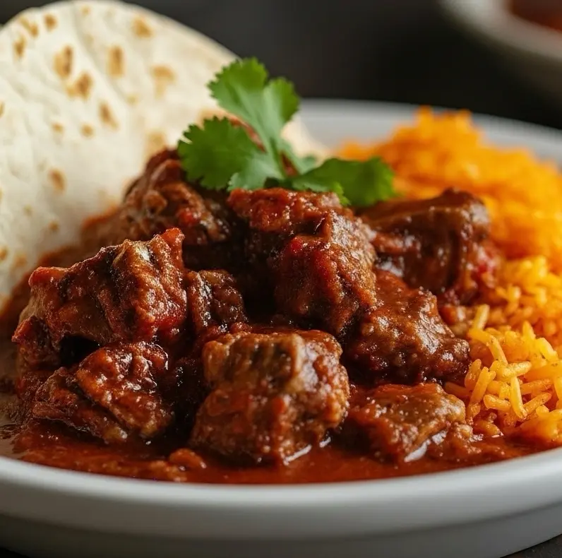 Asado de Puerco and Mexican Rice is a deeply comforting and traditional meal that brings bold, rich flavors straight to your table. Asado de puerco features tender chunks of pork slowly simmered in a vibrant red chile sauce made from dried chiles, garlic, and warm spices.