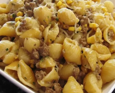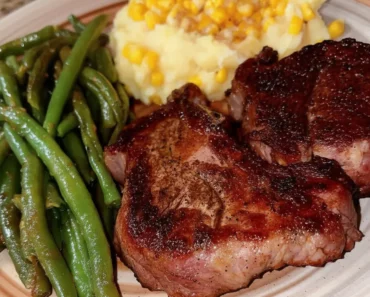 Creamy mashed potatoes with sweet corn, and tender green beans