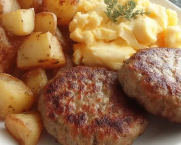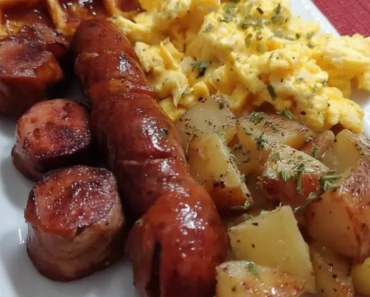 Crispy Breakfast Sausage, Scrambled Eggs, Waffles & Country Potatoes