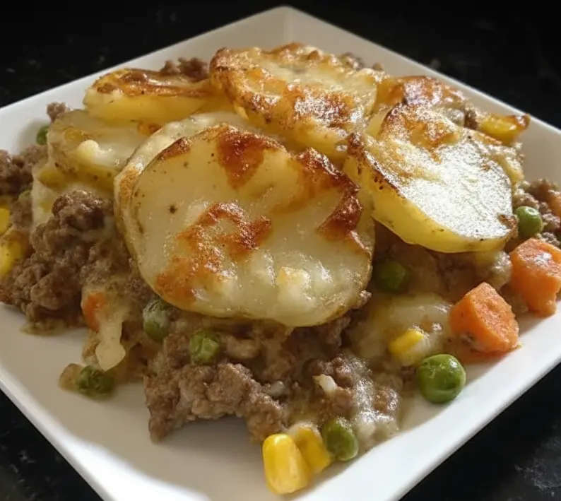 Cheesy Ground Beef & Potato Bake is one of those comforting, homestyle dishes that always feels like a warm hug at the end of the day. It brings together simple pantry staples ground beef, potatoes, cheese, and mixed vegetables and transforms them into a complete, satisfying meal that the whole family can enjoy. What makes this casserole special is the layers: thinly sliced potatoes that turn golden and slightly crispy on top, a creamy and savory beef mixture in the middle, and just enough cheese to bind everything together without overpowering the flavors.