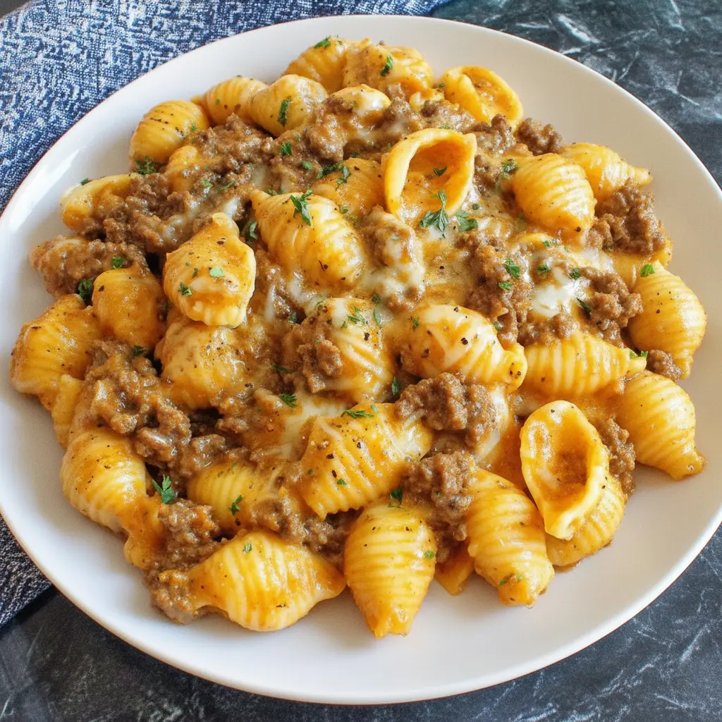 Creamy Beef and Shells is a delicious and hearty pasta dish similar to the hamburger helper, ready in just 30 minutes. This is perfect for a quick dinner for the whole family! It is rich, flavorful, and cheesy and even kids will love it!