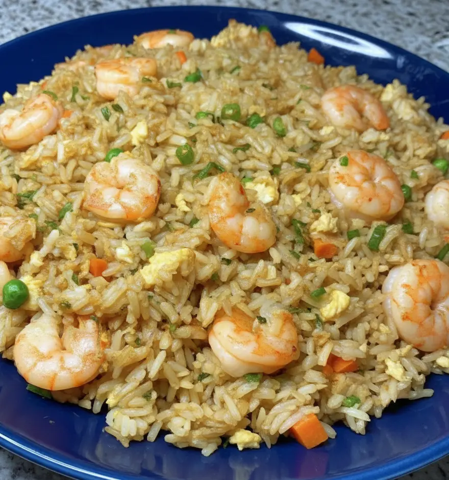 Classic Shrimp Fried Rice with fresh shrimp, rice, green onions, peas, carrots, and sesame oil. Tips for making the BEST fried rice!