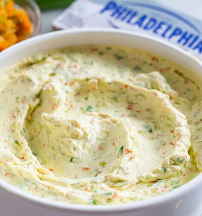 This Garden Vegetable Spread is a bright and creamy blend of Philadelphia cream cheese, crisp vegetables, and light seasonings perfect for spreading on bagels, crackers, sandwiches, or wraps.