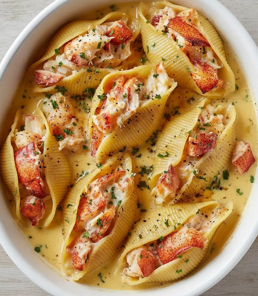 Garlic Butter Lobster-Filled Jumbo Pasta Shells are an elegant yet comforting dish that brings together the richness of seafood with the indulgence of classic garlic butter pasta. This recipe feels luxurious without being overly complicated, making it perfect for special dinners, holidays, or when you want to impress without spending all day in the kitchen. The sweetness of tender lobster meat pairs beautifully with the savory depth of garlic butter, while jumbo pasta shells provide the perfect vessel to hold all that flavor. Every bite delivers a balance of creamy, buttery richness and delicate seafood taste.