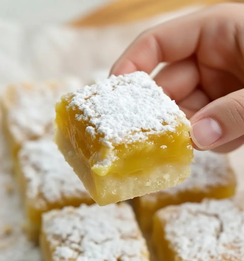 - Serve: Lift from the pan, dust with powdered sugar, and cut into bars. Garnish with whipped cream and zest if desired.