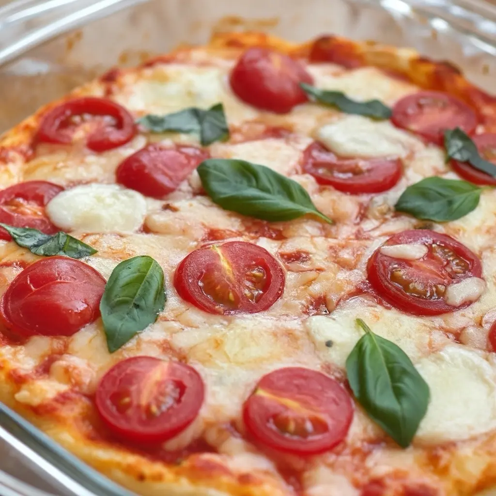 The base is rich and creamy, usually made with a blend of cream cheese and mozzarella, which gives the dip structure and that irresistible cheese pull. On top, a layer of crushed or diced tomatoes adds brightness and a slight acidity that cuts through the richness. Fresh basil stirred in or sprinkled over the top brings a fragrant, herbal note that instantly says “Margherita.”