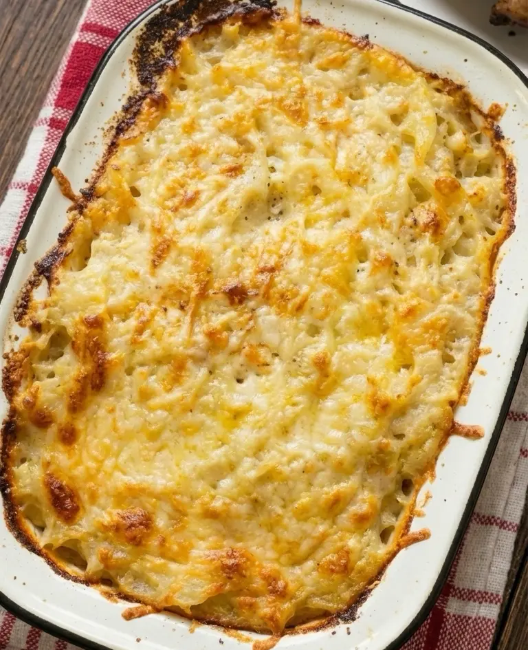 This dish was originally created as a way to use up leftover vegetables and mashed potatoes, making it both economical and delicious. The potatoes are mashed until creamy, then mixed with sautéed cabbage and onions that bring sweetness and texture. Once combined, the mixture is placed in a baking dish and topped generously with sharp cheddar cheese. As it bakes, the cheese melts and forms a golden, slightly crispy crust that adds incredible flavor and contrast to the soft potato mixture underneath.