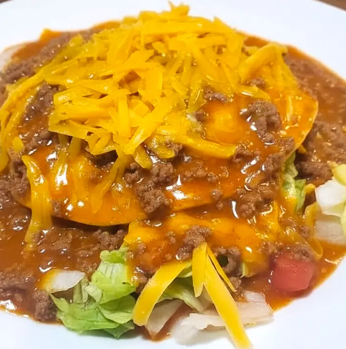 This style of enchiladas is especially popular in New Mexico, Texas, and parts of the Southwest, where stacked plates are topped with red chile or green chile sauce. The version in your photo celebrates classic red enchilada flavor rich, smoky, lightly spicy, and perfect with ground beef. The sauce is key, giving the dish its signature taste. Homemade or canned, the sauce soaks into the tortillas, creating layers that are soft yet sturdy, almost like enchilada lasagna.
