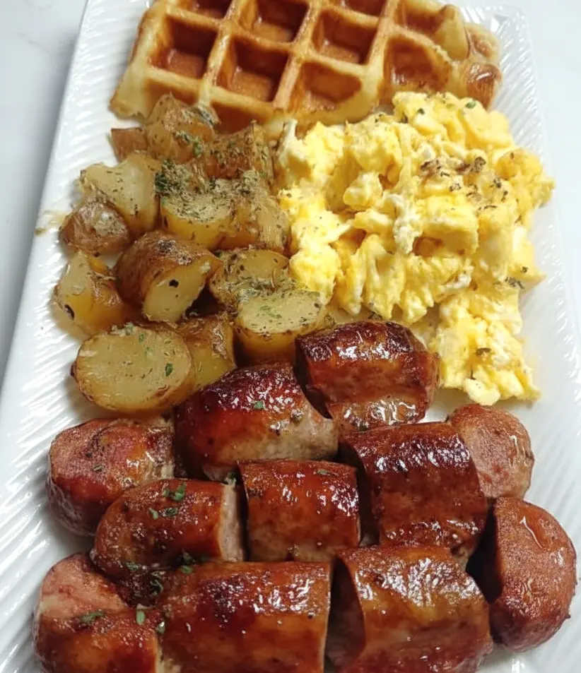 A hearty breakfast platter like this Turkey Smoked Sausage Breakfast is the kind of meal that starts your morning with warmth, comfort, and satisfying flavor. It’s a classic combination crispy waffles, fluffy scrambled eggs, tender seasoned potatoes, and perfectly browned smoked turkey sausage all brought together on one plate for a complete, filling start to the day. This kind of breakfast feels homemade, comforting, and special enough for a weekend, yet simple enough for a busy morning when you want something solid and energizing.